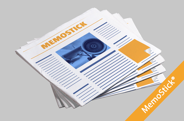 Die Titelseite einer Zeitung ist meist für Werbetreibende tabu, es findet keine Anzeigenplatzierung statt. Eine willkommene Ausnahme davon ist der MemoStick®. Dieser wird – einem Post-it® gleich – direkt auf die Titelseite geklebt. Er kann, wenn vom Werbetreibenden gewünscht, wieder abgelöst werden und so als physisches Responseelement dienen. Die MemoSticks® gibt es in einer Vielzahl von Formen (Haus, Pfeil, Herz, Rund, Stern…) und in diversen technischen Ausführungen. Die Standardversion ist ein quadratischer Kleber, der vorn und hinten bedruckt ist und mit einem wieder ablösbaren Kleber auf der Zeitung angebracht wird.