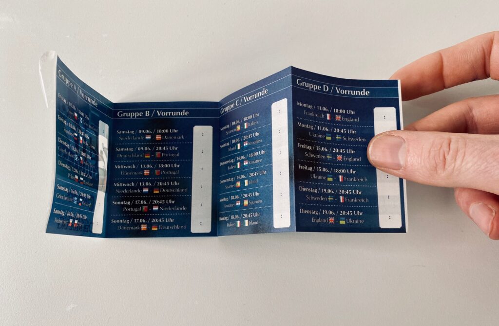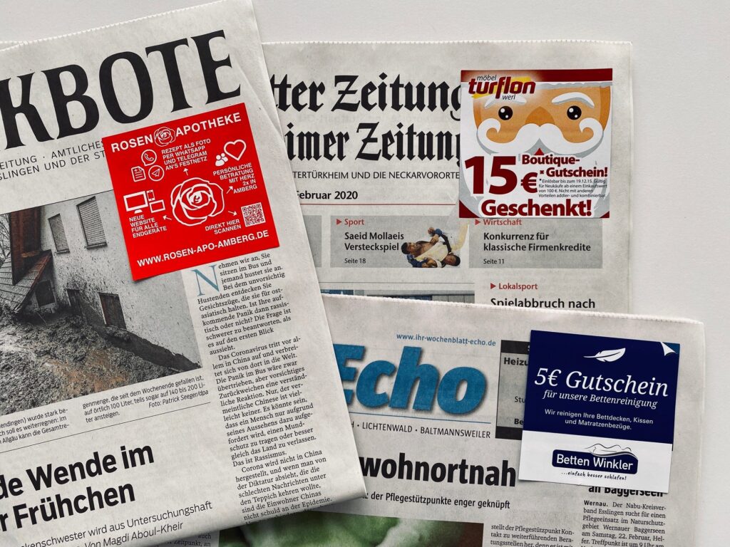 Darüber hinaus gibt es MemoSticks® als Mitgliedsausweis, als Minibooklet, mit Rubbelfeld oder mit Perforation. Das Rubbelfeld kann noch in Kombination mit einer Nummerierung (fortlaufend oder zufällig) produziert werden, um diesen attraktiven Werbeträger für Gewinnspiele einsetzen zu können. Bieten Sie Ihren Kunden je nach Einsatzzweck verschiedene Lösungsmöglichkeiten an. Das Aufbringen auf die Zeitungstitelseite geschieht maschinell, daher sind auch große Auflagen zu attraktiven Preisen realisierbar. Dabei spielt das Format (Berliner, Rheinisch, Nordisch) und die Ausrichtung (Vollformat oder Halbformat) keine Rolle.